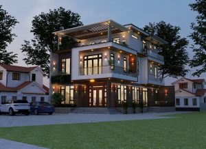 - PHỐI CẢNH 3D THIẾT KẾ BIỆT THỰ TÂN CỔ ĐIỂN