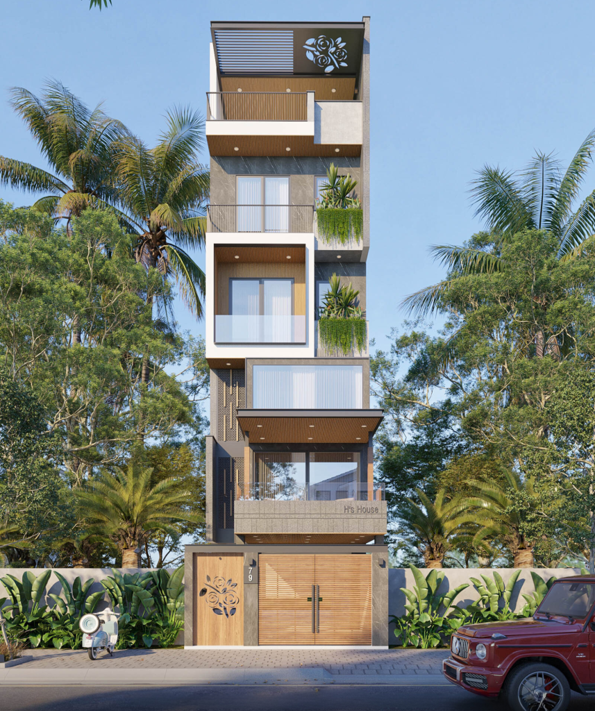 - PHỐI CẢNH 3D THIẾT KẾ NHÀ PHỐ 5 TẦNG HIỆN ĐẠI